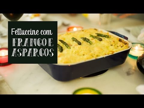 Cozinhe o macarrão na METADE do tempo indicado no pacote. Isso é importante porque ele vai terminar de cozinhar no forno. Faça a montagem em um pirex: molho, massa, frango desfiado, cebolinha picada, queijo ralado. Faça duas ou três camadas e termine com bastante queijo e as “flores” do aspargos enfeitando. Se estiver fazendo com antecedência, pare por aqui. Cubra com filme plástico e mantenha na geladeira. Na hora de assar não precisa cobrir com nada, deixe gratinar. São cerca de 15 a 20 minutos em forno alto. Não passe disso pra massa não ficar muito cozida! Basta o molho ferver um pouco e o queijo dourar. Abra um vinho tinto e voilà, uma excelente refeição. Rende 2 a 3 porções.